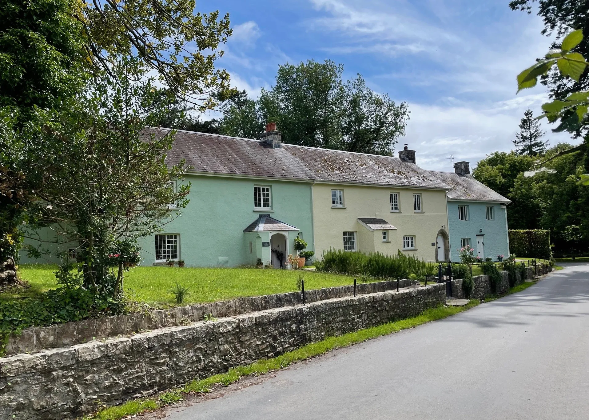 The village sits about two and a half miles southwest of Bridgend, reached by a country lane that winds through the estate. You'll cross a narrow stone bridge where only one car can pass at a time — a gentle reminder that Merthyr Mawr operates at its own pace.